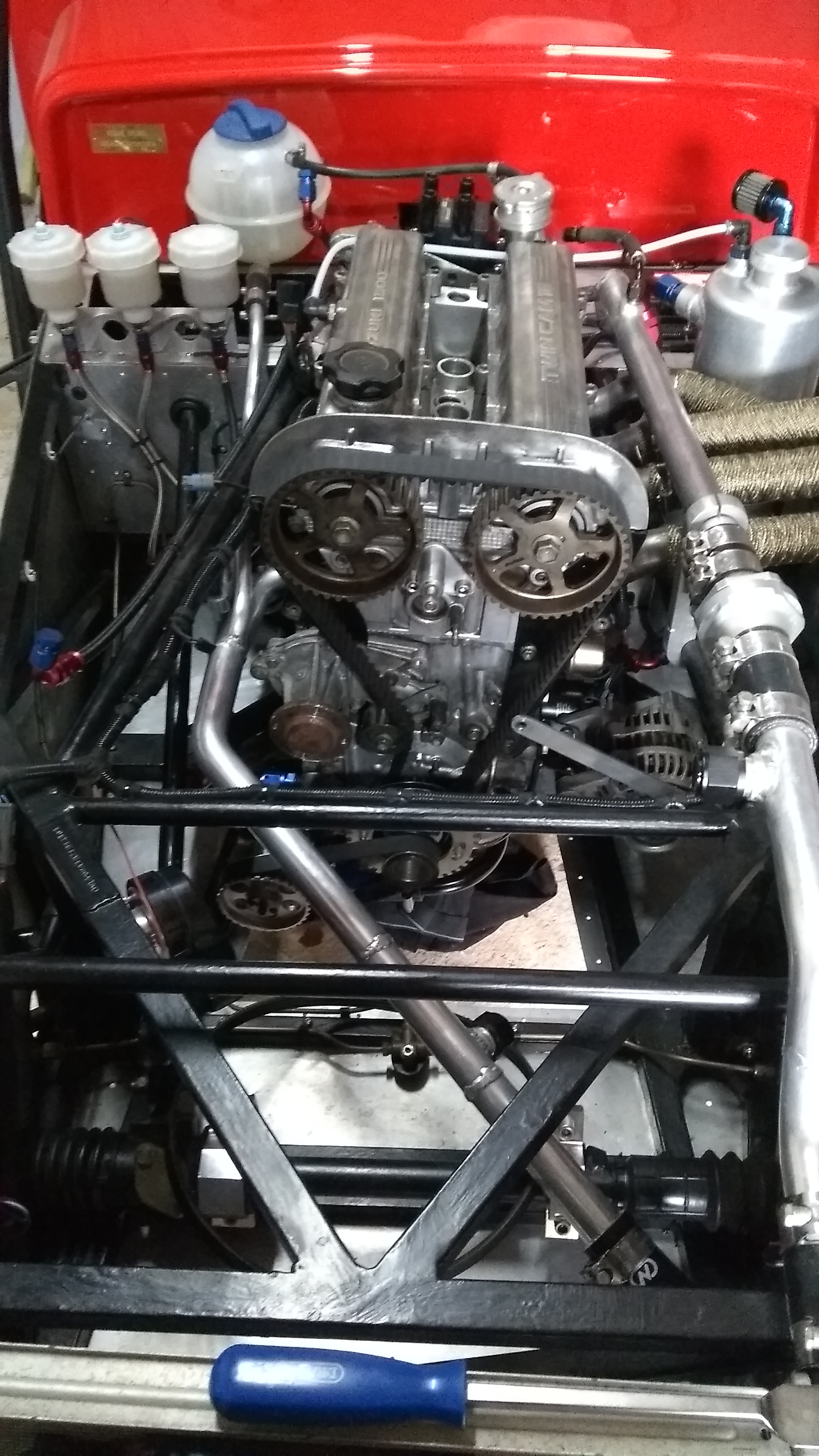 Over a number of weekends I cleaned the donor engine and swapped over all of the important parts. The ARP head studs, dry sump system, uprated clutch etc. The old short block was out and the replacement cleaned-up version was in the car after three afternoons; I was pretty happy with this.