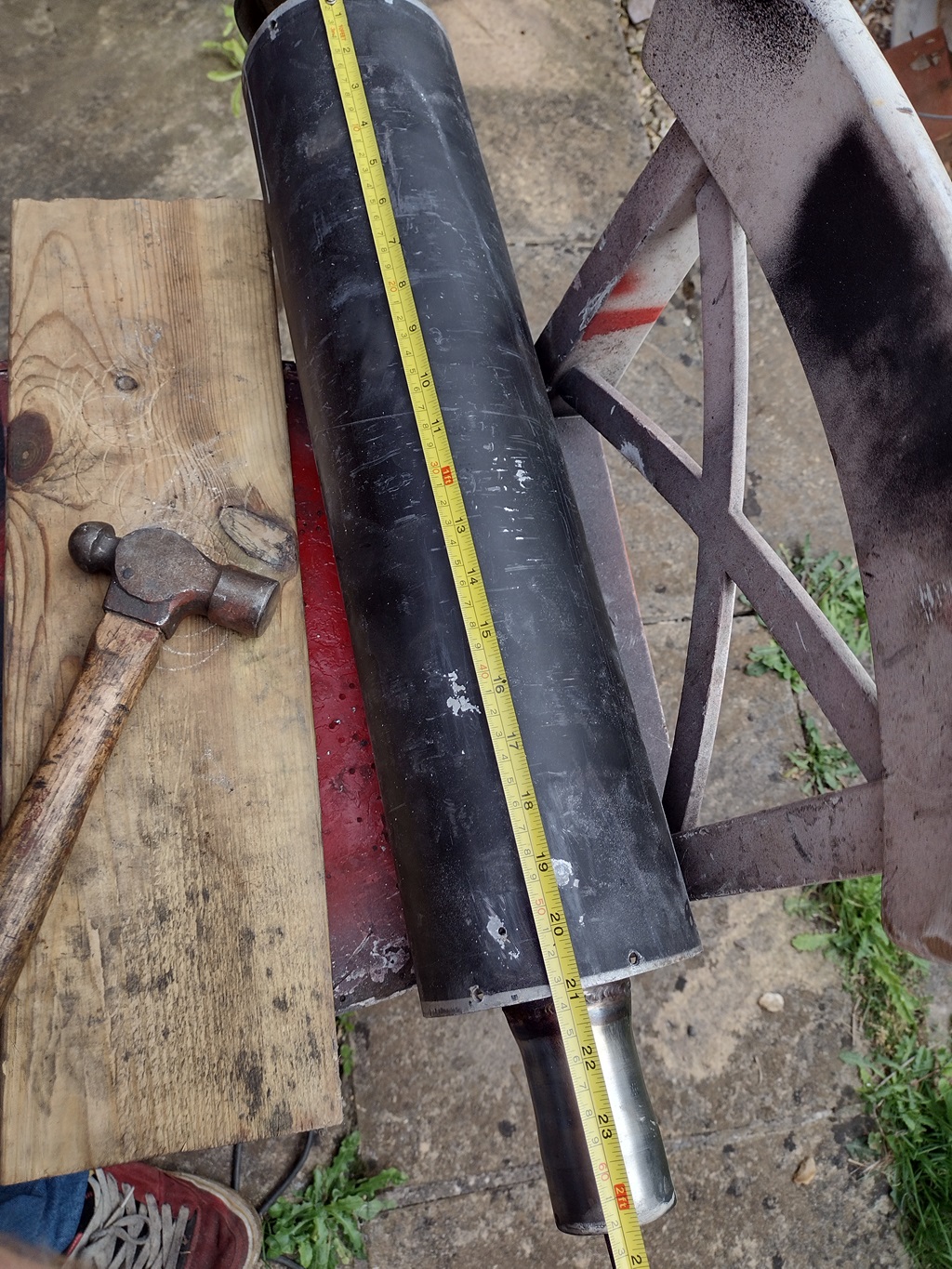 The back box was some unknown carbon fibre unit I bought off of ebay many moons ago. I knew it was a from a Yamaha sports bike and appeared to be rebuildable but that was about it. I tried to remove the carbon fibre outer body and weirdly enough there was some 3mm thick aluminium underneath it! So the carbon fibre was just for looks; not my kind of thing.