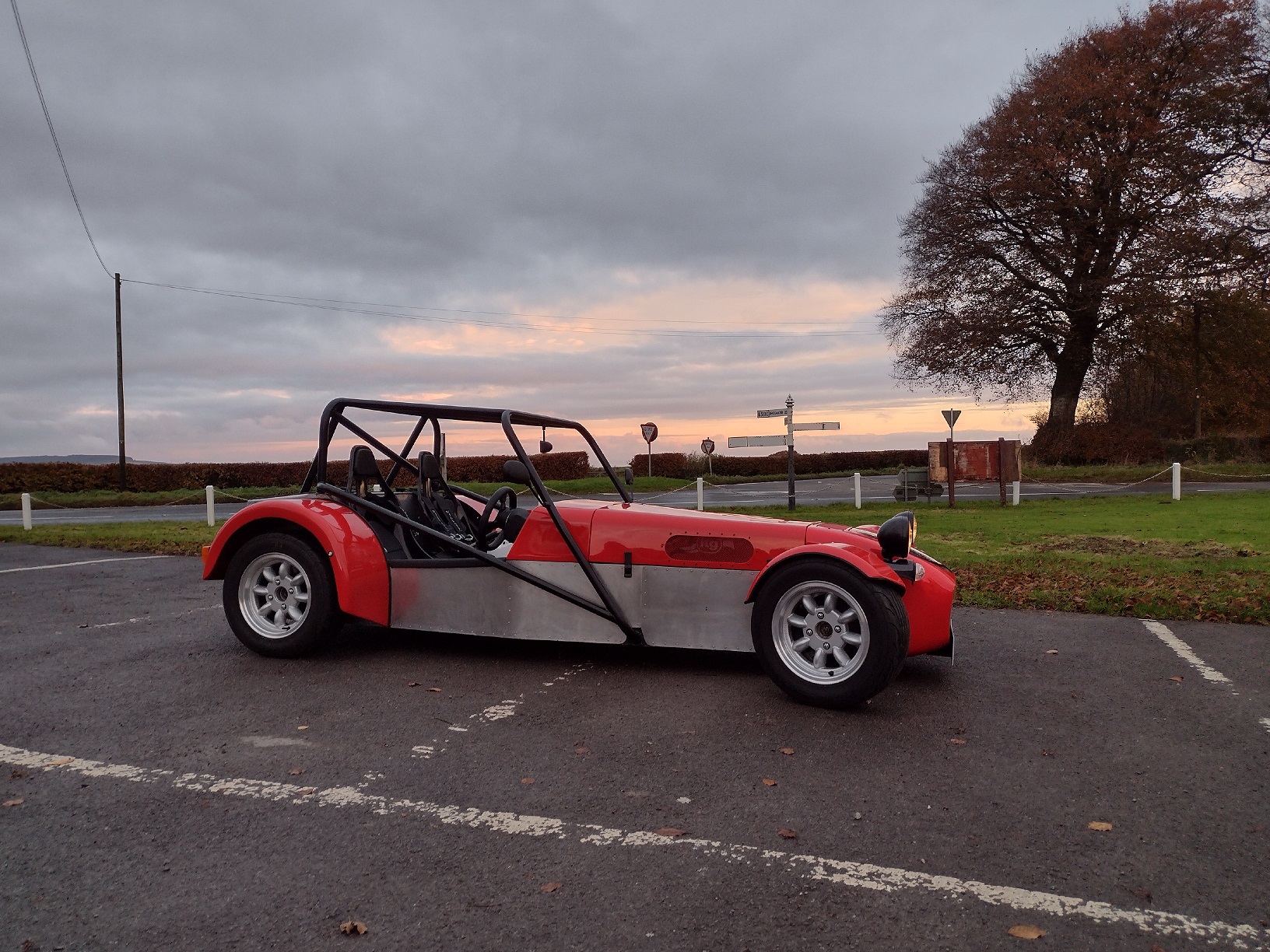 It was weighed many years back in racing trim at 475kg; completely dry. Since then it has gained two full size seats with padding, a properly working water system with header and spill tank, a dry sump system with a 5 litre oil tank, a full full size fuel tank, mirrors, IVA trim, padded interior, lights, full size arches etc etc. So 540kg sounds about right! That’s the price you pay to have a proper road going car with a roll cage; I’m not going to complain.